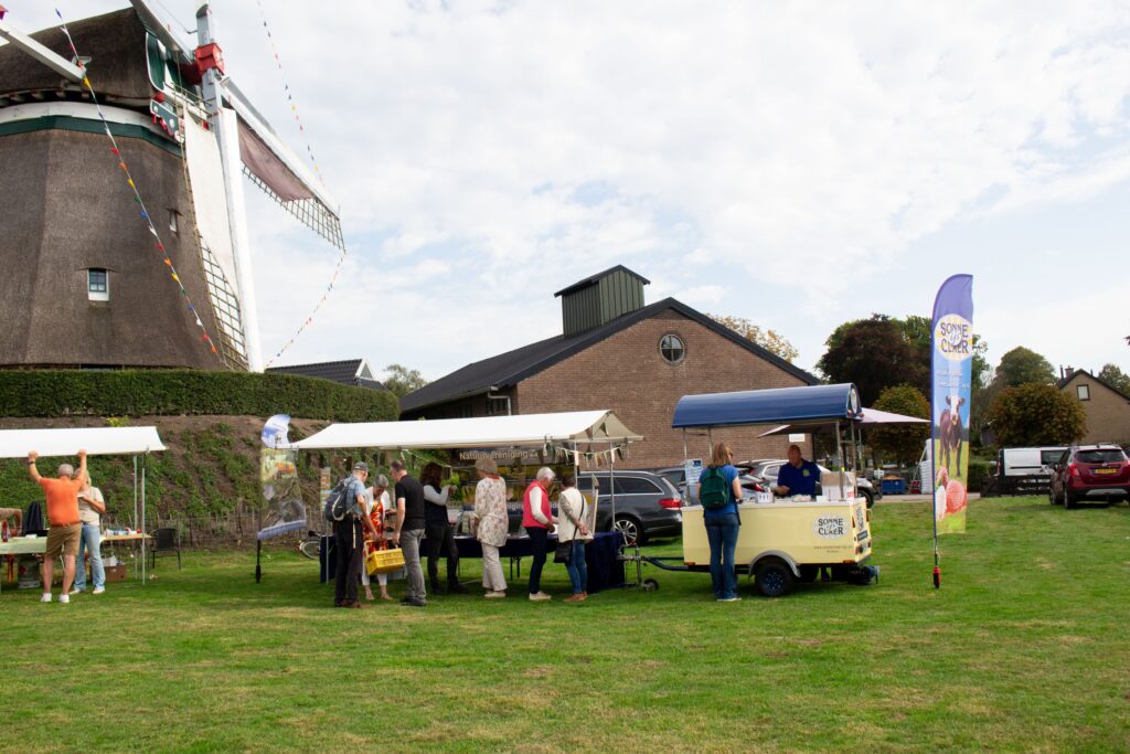 Johan en Gea Zwiep uit Fort hadden de datum van de Fruitpersdag & Meulemarkt op hun kalender genoteerd. Die wilden ze niet missen. “Wij zijn donateur van de molen en hadden erover gelezen in de nieuwsbrief.” Ze genieten van de ongedwongen sfeer. “Dit zijn mooie initiatieven.”